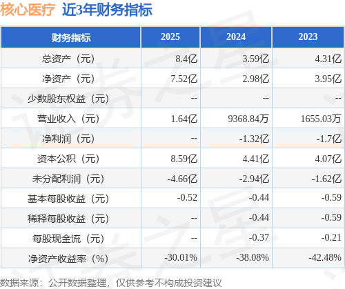从现在发布的财报来看,中心医疗2025年总资产为8.4亿元,净资产为7.52亿元;近3年净利润分别为nan元(2025年),-1.32亿元(2024年),-1.7亿元(2023年)。概况见下表: